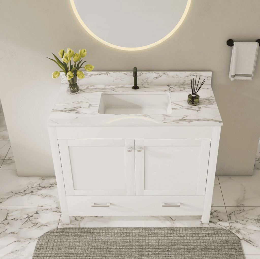 Not every vanity needs a high polish. For contemporary spaces, a reflective finish works. For bathrooms with natural tones or textured tiles, a softer honed or satin finish often fits better.